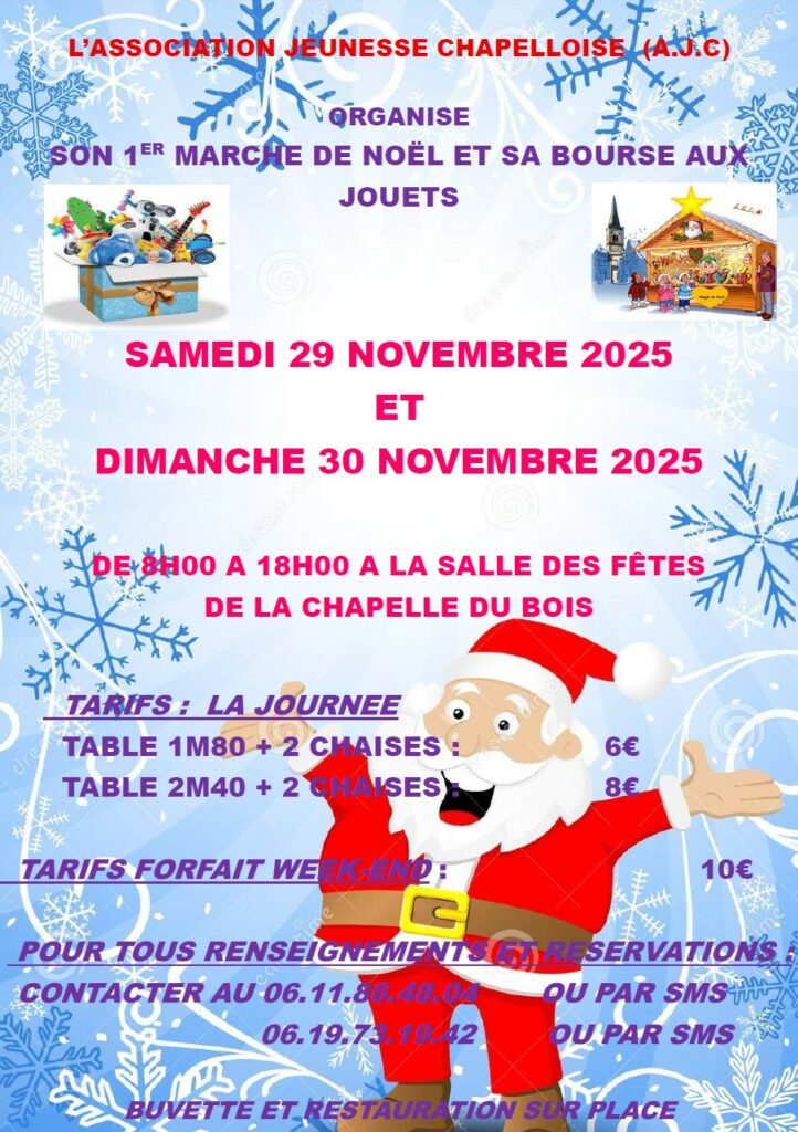 The Jeunesse Chapelloise association is organising its 1st Christmas market and toy fair.